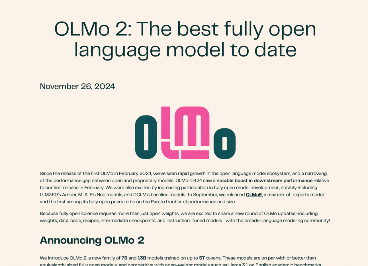 Image Source: Ai2/“OLMo 2: The Best Fully OpenLanguage Model to Date”/Screenshot